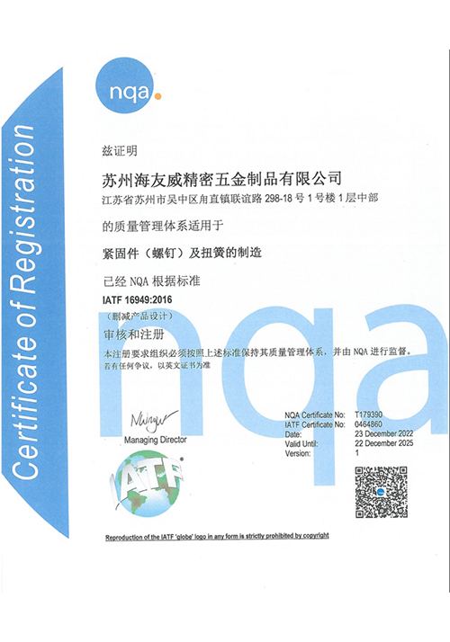 蘇州海友威精密五金制品有限公司于2003年投資創建,擁有大量從日本、臺灣購進的高精度緊固件設備,以及各種進口的試驗、檢驗設備。并憑借嚴謹的工藝流程,優質的服務理念,豐富經驗的專業技術人員,配套歐、美、日等大型......